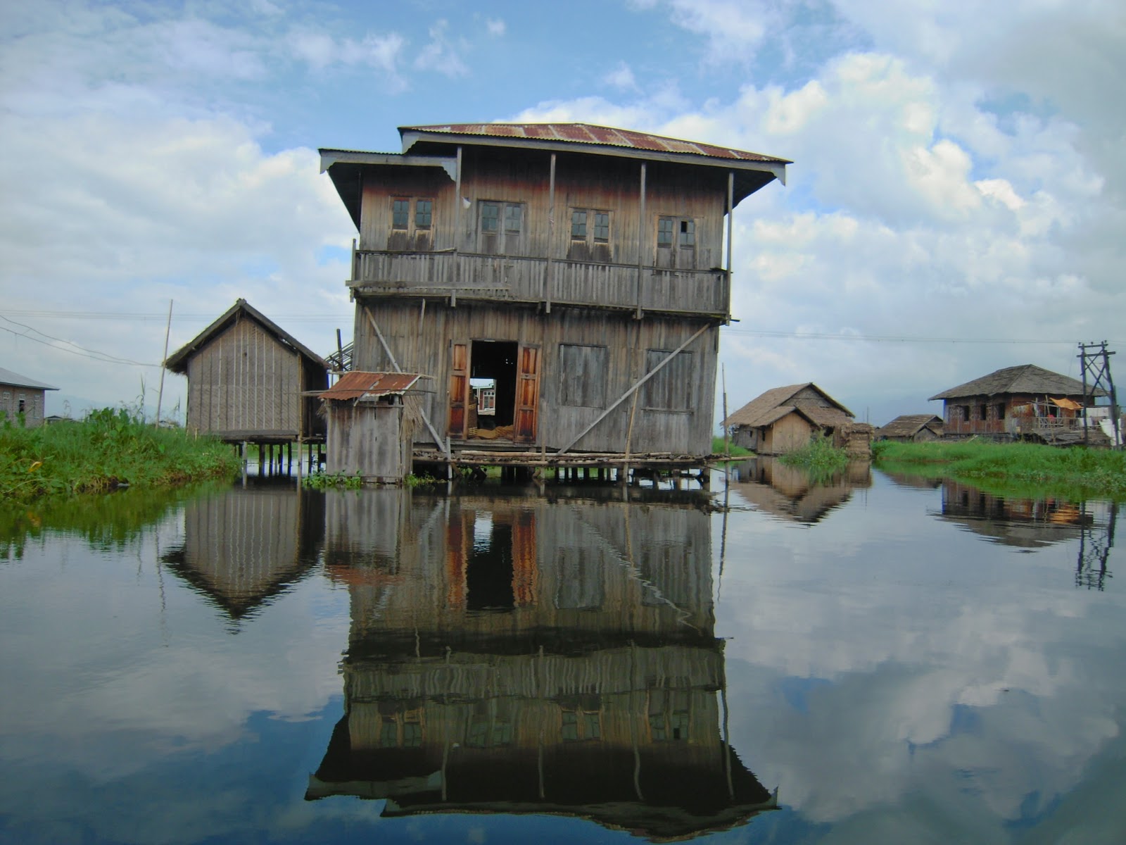 La bourgade est située tout au bord d'un grand canal et est traversée de canaux. Les champs alentours sont souvent inondés et sur le lac Inle, les villageois vivent dans des villages sur pilotis, on a l'habitude de vivre les pied dans l'eau ici. Ceci explique peut-être que la montée des eaux après les fortes précipitations qui ont trempé l'Asie du Sud-Est ne semblent gêner personne ici...